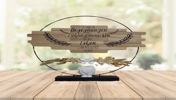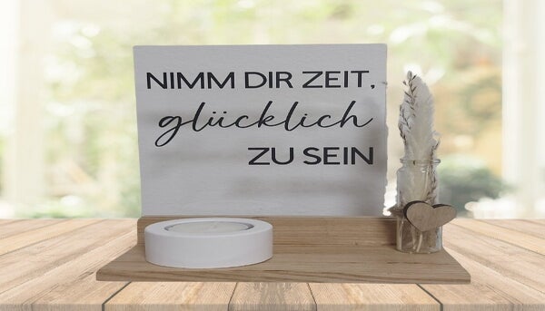 Jedes meiner Produkte wird von mir mit viel Liebe zum Detail handgefertigt, um dir ein einzigartiges und persönliches Stück zu bieten. Die Möglichkeiten sind fast grenzenlos, in der Bildergalerie unterhalb, kannst du dich inspirieren lassen. Hast du einen speziellen Wunsch oder eine einzigartige Idee? Zöger nicht, mich zu kontaktieren! Ich bin hier, um deine individuellen Anforderungen zu erfüllen und dir zu helfen, dein ganz persönliches Deko-Highlight zu schaffen. Ob mit besonderen Sprüchen, Zitaten oder deinen eigenen Vorstellungen - ich mache es möglich.